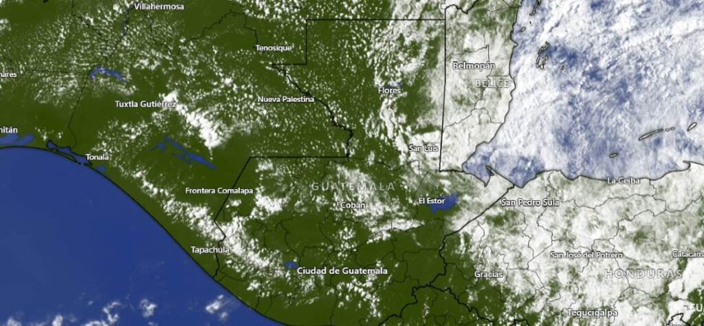 Por la tarde se esperan lluvias acompañadas de actividad eléctrica en Occidente, Bocacosta, Altiplano Central, el Norte y Caribe.